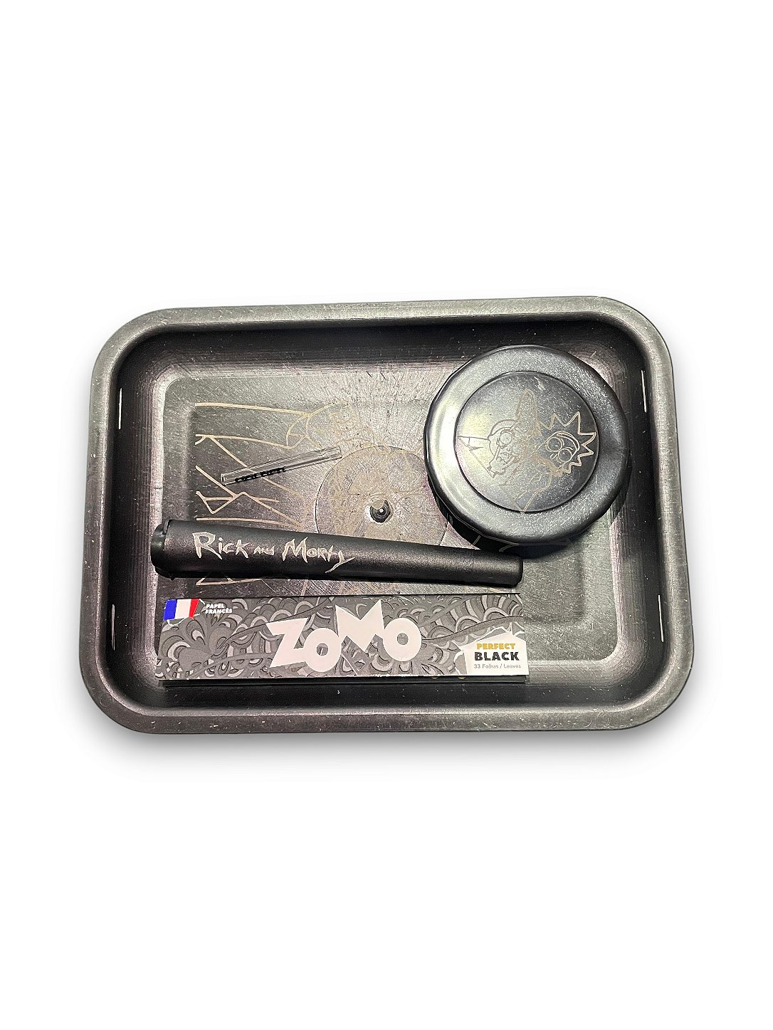 Feita em acrílico preto, a bandeja tem formato retangular e ilustrações gravadas relacionadas ao universo Rick And Morty. O material facilita o manuseio e impede o acúmulo excessivo de sujeira. As medidas são compactas, facilitando o transporte e organização de pequenos itens pessoais ou artigos para fumantes.