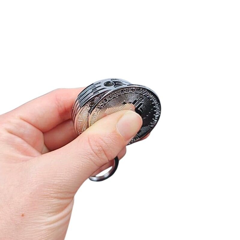 Compacto e funcional, este isqueiro maçarico em formato de moeda Bitcoin oferece chama forte e recarregável para uso prático.